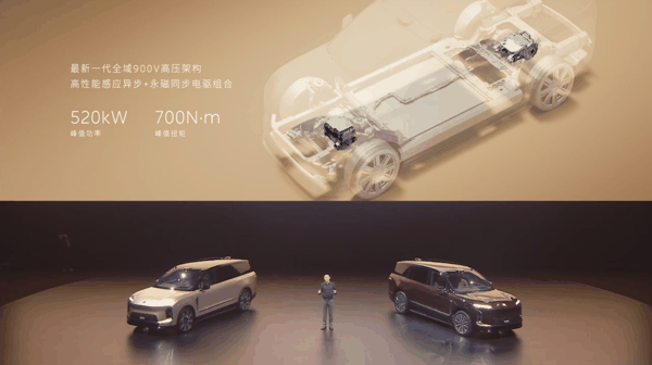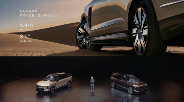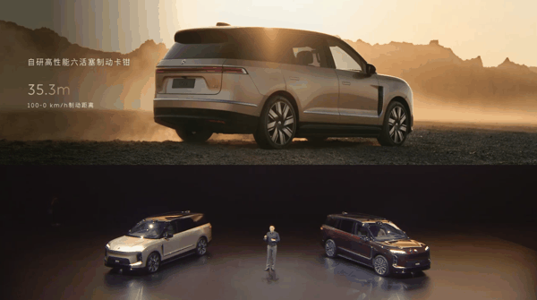 蔚来 ES9 还搭载最新一代全域 900V 高压架构,峰值功率 520kW、峰值扭矩 700N·m;搭载自研高性能六活塞制动卡钳,100-0km/h 制动距离 35.3m;标配 102kWh 长续航电池,CLTC 综合工况续航里程 620km;搭载国内唯一量产交付的线控转向系统,并标配后轮转向(转弯半径 5.4 米)。