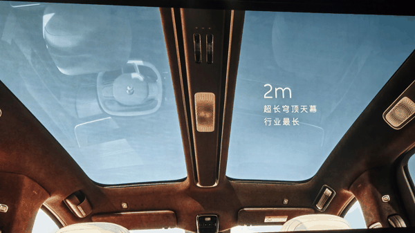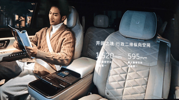 蔚来 ES9 还全球首发阵列式 LC 隐私调光车窗、行业首创 20 点机械式足底按摩,同级首发座椅位置随动智能风向调节、座椅桌案随动智能追光阅读灯等,同时拥有行业最长的穹顶天幕。