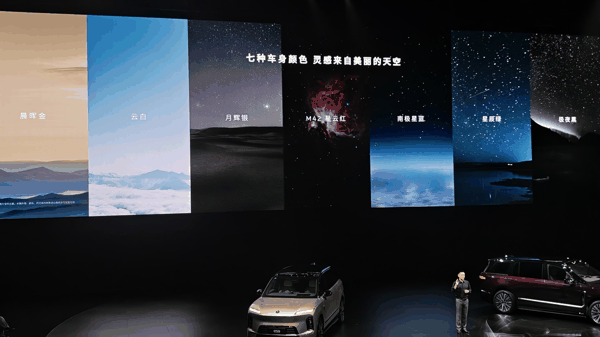 据介绍,蔚来 ES9 新车提供 7 种车身颜色,晨晖金、云白、月辉银、M42 星云红、南极星蓝、星辰绿、极夜黑,可选配玄金套装(套装含玄金车灯饰件、玄金轮圈 + 曙光金制动卡钳、玄金车标和玄金车身套件)。