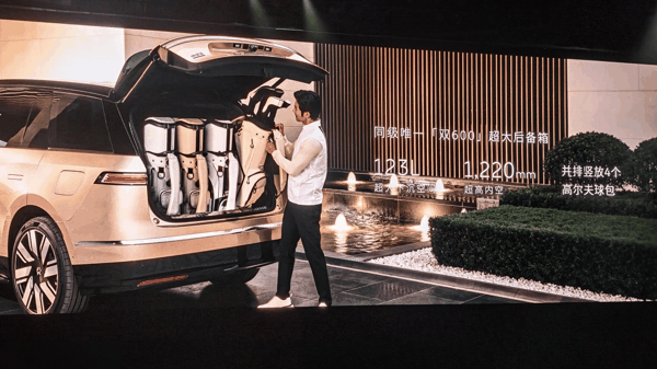 蔚来 ES9 内部空间直接对标 MPV,前后备厢加起来有 816L 容量,其中前备箱容积为 216L,后备箱容积为 600L。李斌直言 6 人 13 箱无压力,座座都是 MVP,MPV 请忘记。