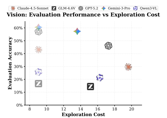 (动图来源:受访者) 结果发现,模型在被动模式下表现尚可,一旦切换到主动探索模式,性能应声而落。 以视觉世界为例, GPT-5.2 从 57.1% 掉到 46.0%,Gemini-3 Pro 从 60.5% 掉到 57.3%,而这就是他们所说的主动被动差距。