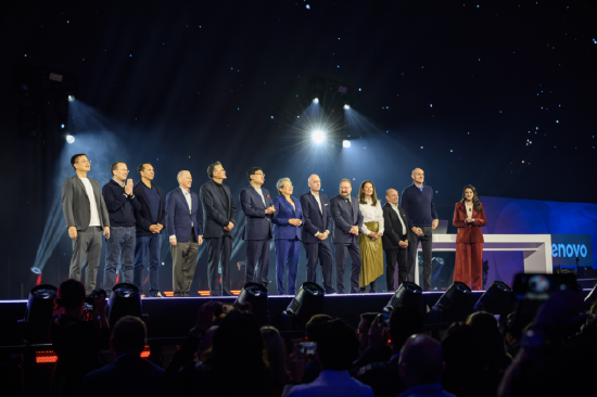 本场发布会的震撼之处,除了Sphere天幕剧场带来的无以伦比的沉浸式体验,还有消费电子行业最豪华的创新领袖阵容。英伟达CEO黄仁勋、AMD CEO苏姿丰、英特尔CEO陈立武、高通CEO安蒙等巨头领军人物先后上台,与联想CEO杨元庆一道发布他们的合作新品。