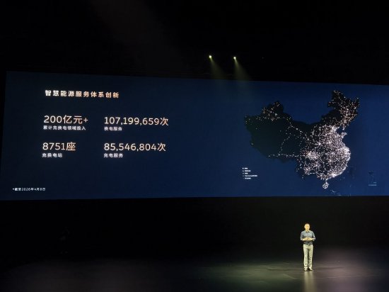 截至2026年4月8日,蔚来在充换电领域累计投入200亿元+,充换电站达8751座,换电服务107199659次,充电服务85546804次。
