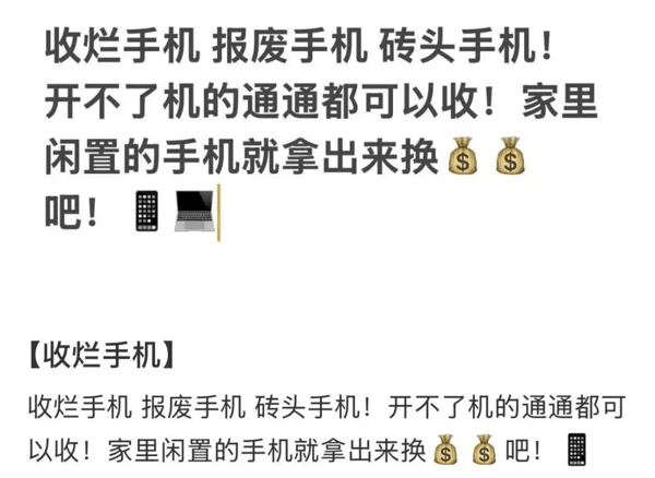 “朋友圈里,以前开店的,倒腾信用卡的,甚至做美容的,现在都开始回收废手机。”