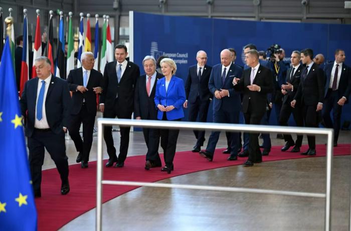 3月19日,欧盟领导人在布鲁塞尔举行的欧盟峰会上合影留念。