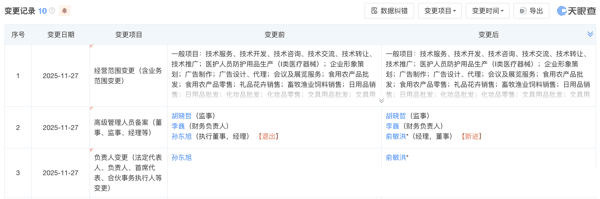 12月1日,界面新闻注意到,天眼查工商信息显示,东方甄选(北京)科技有限公司(以下简称“东方甄选”)近日发生重要工商变更。原法定代表人、执行董事、经理孙东旭卸任相关职务,由新东方创始人俞敏洪接任法定代表人、经理,并担任董事一职。