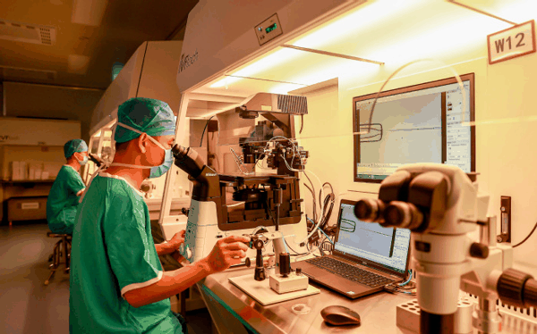 医护人员对冻胚进行相关检测。中信湘雅医院 供图