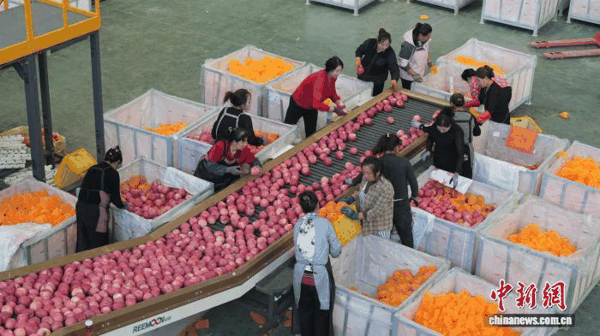 中国农历马年春节临近,甘肃省平凉市静宁县的城乡道路上,冷链物流车辆穿梭不息,将仓库中红彤彤的苹果运往海内外千家万户。