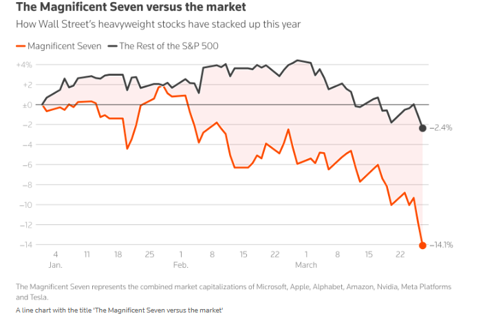 行情数据显示,Roundhill旗下追踪“七巨头”的ETF在上周下跌了5%,使其月度跌幅达到约10%——自去年10月高点以来的跌幅接近20%。