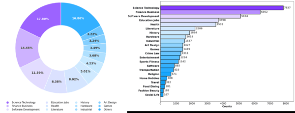 研究团队认为,这类 Benchmark 应该服务于真实的用户需求。为此,他们收集了一个包含约 9.6 万条用户查询的内部数据集 (来自用户与搜索增强型 LLM 的真实交互),经过数据脱敏、过滤和分类,最终获得 4.4 万条符合 "深度研究" 定义的查询,并统计出用户在 22 个主题领域上 的真实需求分布。