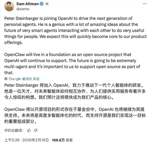 (图为截至2026年2月4日 Capability Evolver 的下载量) 可以说,EvoMap 的诞生,本质上是 ClawHub 中文区 Skill 被大量下架,以及Peter Steinberger 被 OpenAI “招安”之后的一系列连锁反应。2026 年 2 月 16 日,OpenAI CEO 萨姆 · 奥特曼官宣,OpenClaw 之父 Peter Steinberger 加入 OpenAI,推动下一代个人智能体的开发。