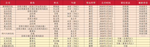 值得一提的是,从开年以来信托行业高管人事调整的趋势不难看出,首席合规官岗位的加速落地,或将成为贯穿2026年全年的行业主线。