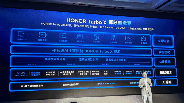 软件系统层面,荣耀 WIN 游戏本搭载了荣耀最新的 Turbo X 技术, 该技术融入 Gaming Turbo X 技术,可提升《赛博朋克 2077》帧率 5.97%、缩短 AutoCAD 3D 文件导出时间 17.9%。
