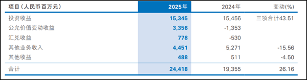 其中,投资收益、公允价值变动收益、汇兑收益三项合计同比增长43.51%,成为拉动非息收入增长的核心动力。特别是以摊余成本计量的金融资产终止确认产生的收益,达到65.53亿元,约为2024年的3.5倍,显示出该行在债券投资上的灵活操作能力。
