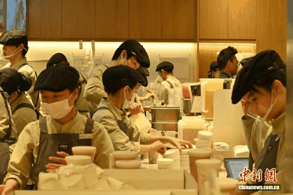12月1日,工作人员在广德市一家奶茶店加紧赶制商品。 中新社 记者 张强 摄