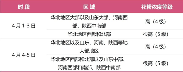 “未来一周我国北方大部地区以晴到多云天气为主,有利于花粉的生成和传播;南方地区有降水过程,会对花粉的传播起到一定的抑制作用。”3月31日,国家卫生健康委、中国气象局联合发布了第二期《全国花粉浓度预报服务提示》。首期发布时间为3月24日。