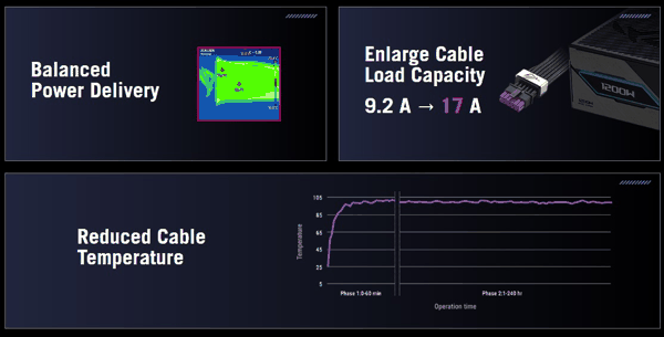 这不仅能满足旗舰显卡功耗需求,还能在部分针脚接触不良时提供安全冗余。官方数据显示,在极端测试环境下, 即使移除中间 4 根线缆,线缆温度仍稳定在 73.4°C, 远低于常规线缆可能达到的 146°C 危险阈值。