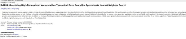 RaBitQ是高健扬在新加坡南洋理工大学读博期间的主要工作,龙程则是他的博士生导师。
