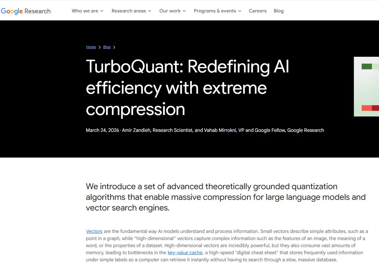 3月26日,谷歌研究院(Google Research)的一篇论文震动全球 存储芯片 市场,引发美国和韩国巨头超900亿美元市值蒸发。