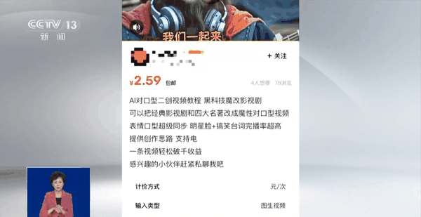 商家号称,花几毛钱,买了教程,两个小时就能学会“AI魔改”;还有商家说,一条视频能轻松收获上千元收益。