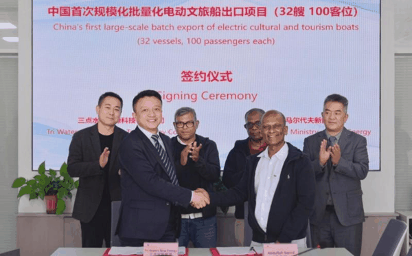 三点水新能源董事长郑天保表示:本次与马尔代夫的合作,既是芜湖本土企业助力中国绿色智能船舶扬帆出海的关键一步,更是以船艇为载体,推动中国全域电动化解决方案走向世界、培育国家高端装备制造出口 “新四样” 的创新实践。三点水将严格履约、高标准交付,全方位赋能马尔代夫交通能源全域电动化转型,共筑可持续发展的零碳海岛未来。
