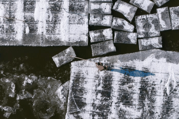 松花江哈尔滨段全面封冻 采冰工作井然有序