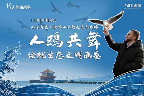 行走美丽画卷|海外人士行走青岛栈桥 人鸥共舞绘就生态文明画卷