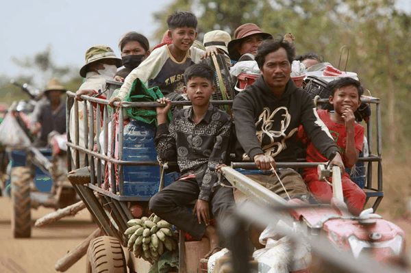 2025年12月10日,柬埔寨奥多棉吉省。柬国防部称,随着柬泰边境冲突升级,奥多棉吉、柏威夏、班迭棉吉、菩萨和暹粒五省超3.7万户家庭(12.7万余人)已撤离至安全区域。图/IC photo