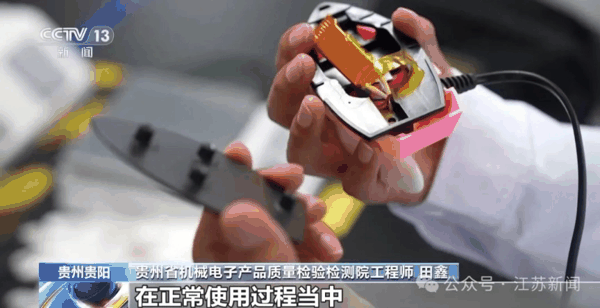 工程师发现,两款小熨斗在材质、组装方式、电源插头等方面,均不符合安全用电技术规范。