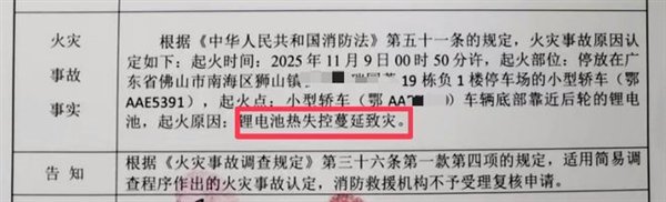 张先生称,这辆车是2022年12月买的,车龄还不到三年,仍处于三包期内,消防部门初步调查报告显示,车辆起火原因为,锂电池热失控蔓延致灾。
