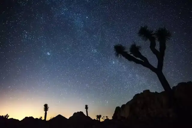美国加利福尼亚州约书亚树国家公园的夜空,伴有科切拉谷人工灯光造成的光污染。图片来源:NPS/Lian Law