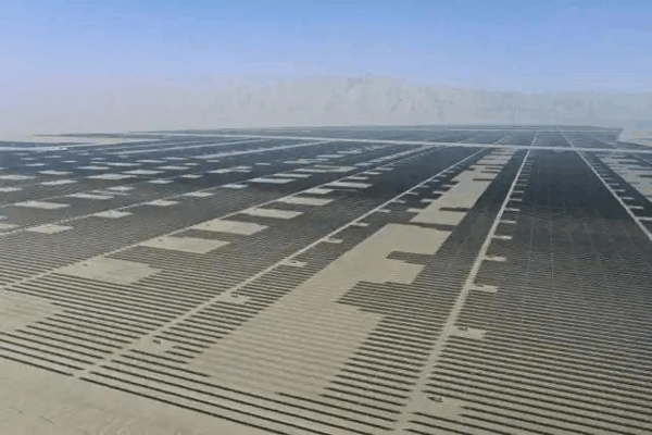 新疆巴音郭楞蒙古自治州若羌县境内的一处400万千瓦光伏项目现场图片来源:新华社