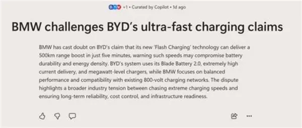 4月7日消息,近日,宝马电池生产负责人在接受采访时,对比亚迪最新发布的闪充技术发表了看法。虽然他承认该技术在数据上令人印象深刻,但同时也提醒业界应对此类极端性能的发布保持谨慎。