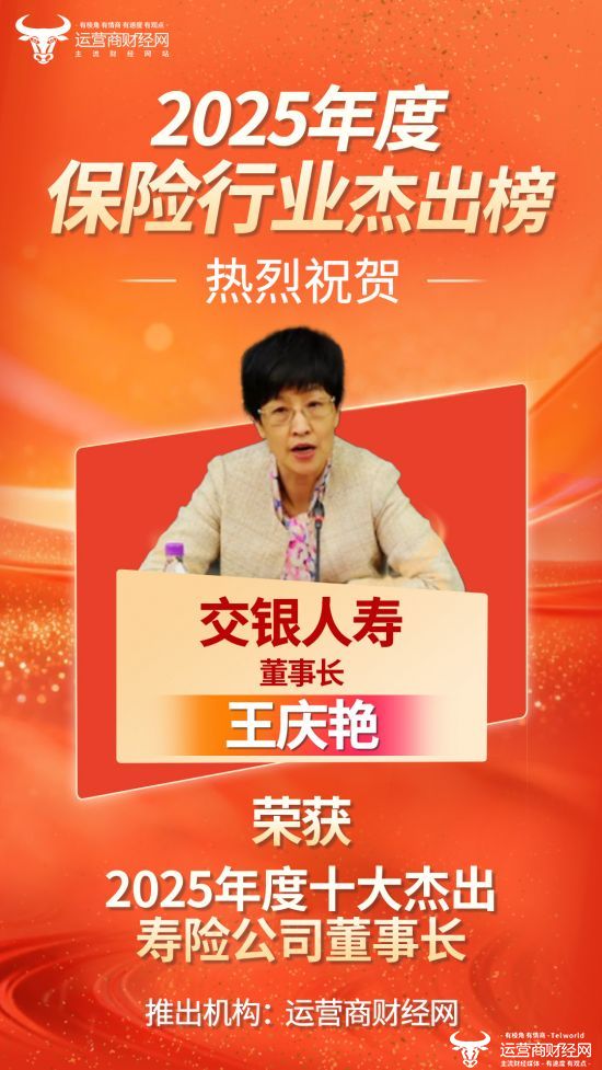 日前,国内知名财经媒体——运营商财经网独家打造的“2025年度十大杰出寿险公司董事长榜”名单正式发布!交银人寿董事长王庆艳成功入围上榜!