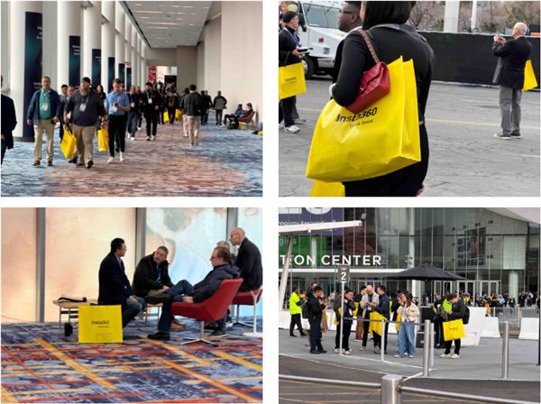 Insta360今年直接在展区的几个核心通道上,放置了印有自己logo的免费黄色“ 大麻袋 ”。。。