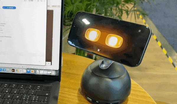 与此同时因为整个无线充模块是三轴可动的,所以在对话互动的时候还可以自动追踪用户的位置,将屏幕带到正对用户角度,甚至还能还原动画片里机器人思考的时的一些细微动作。