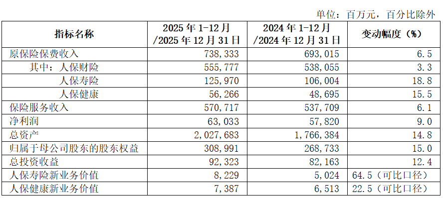2026年3月27日,北京 ——中国人民保险集团股份有限公司(“中国人民保险集团”或“本集团”、“集团”、“公司”,上海证券交易所证券代码:601319.SH,香港联交所证券代号:1339.HK),发布公司2025年度业绩。