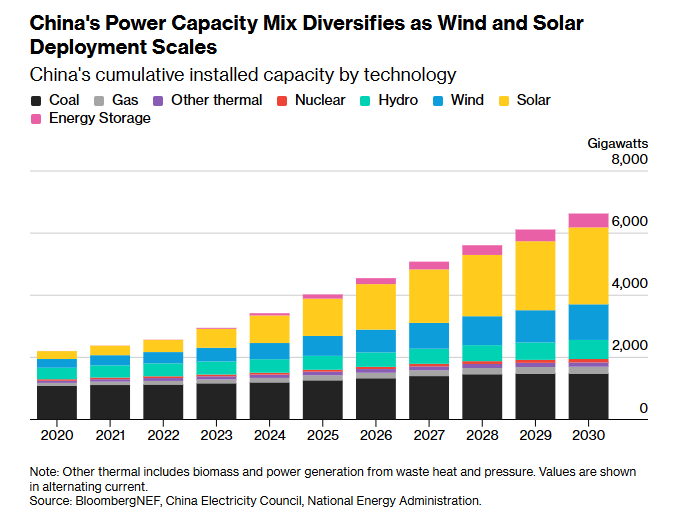 巴克莱 银行 估计,可再生能源已占中国装机容量的近50% 。