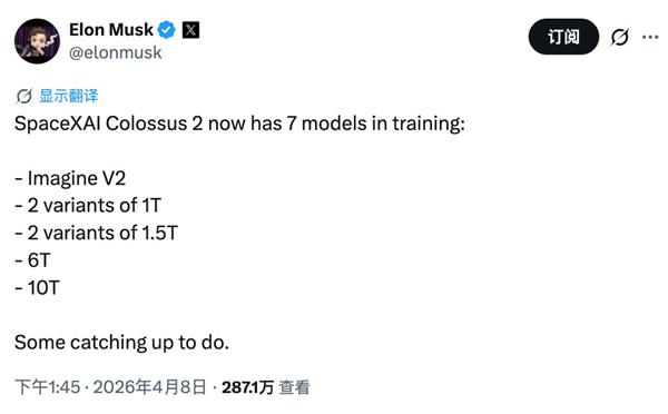 马斯克称xAI正在同时训练7个大模型:10万亿参数AI要来了