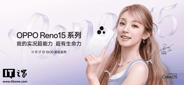 IT之家 11 月 10 日消息,OPPO Reno 15 系列手机已官宣 11 月 10 日(今日)19:00 新品发布,宣称“实况超能力,超有生命力”,预计将主打 LivePhoto 实况拍摄。