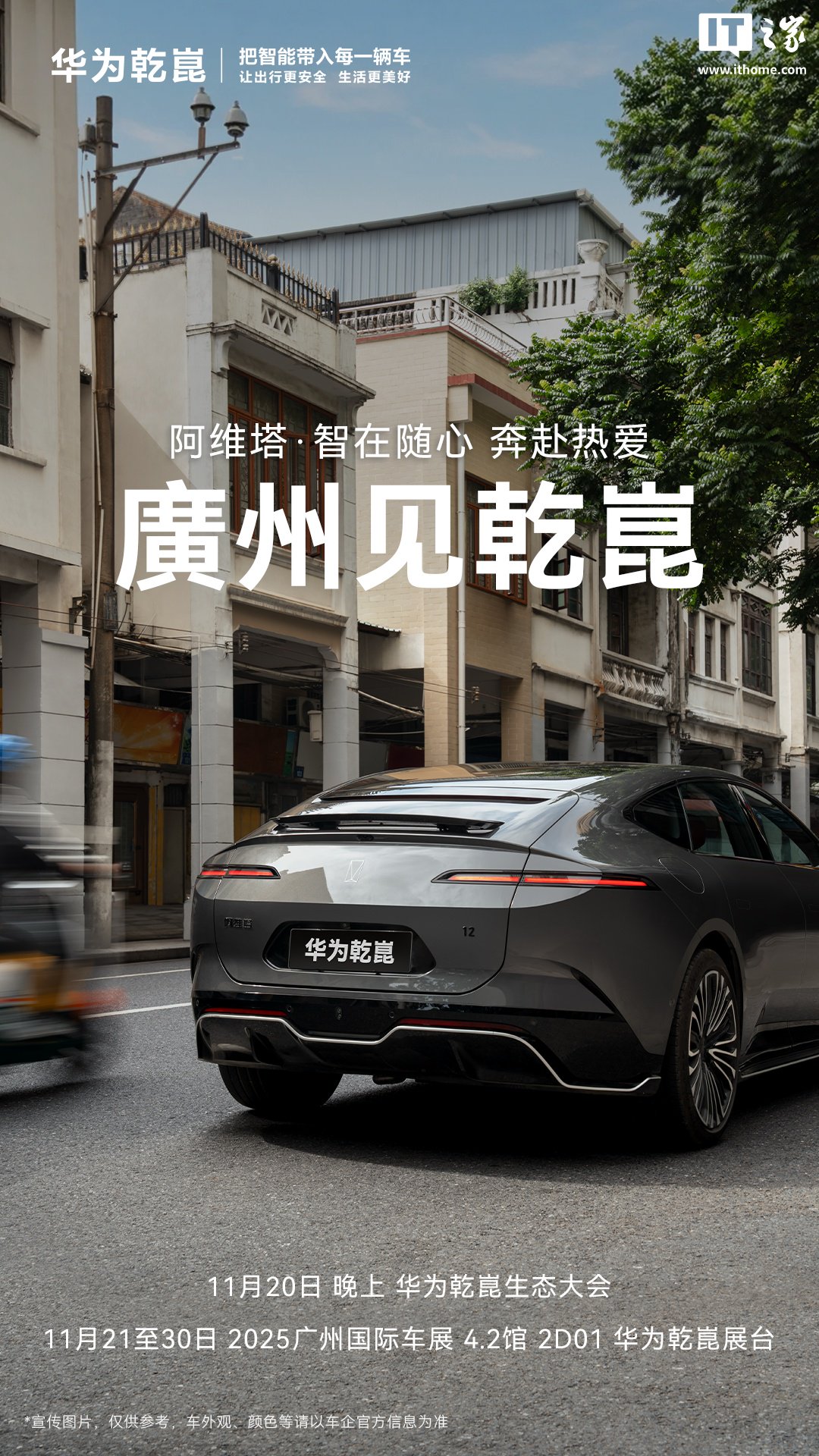 IT之家 11 月 13 日消息,华为乾崑智能汽车解决方案官方微博今日宣布,华为乾崑生态大会将于 2025 年 11 月 20 日晚 在广州举行。