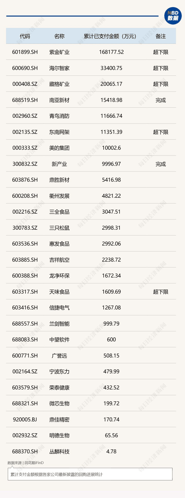 行情驱动+业绩支撑,26家公司回购已落地, 紫金矿业 7个交易日累计回购近17亿元