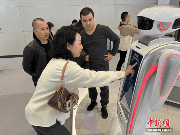 11月28日至29日,第三届全国人力资源服务业发展大会在湖北武汉举办。图为参观者体验AI自助求职系统。 周昕 摄