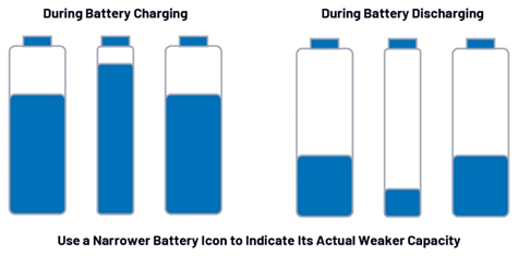在充电过程中,内阻较高的不健康电芯在给定的充电电流下,会经历更大的电压降。在这种情况下,如果所有电芯都表现出相同的电压值,不健康电芯存储的电能实际上更少。如图所示,不健康电芯在充电过程中具有较小的 Vcell_actual 值。此外,由于其阻抗造成的功率损耗更高,不健康的功率电芯通常会经受更高的充电温度。