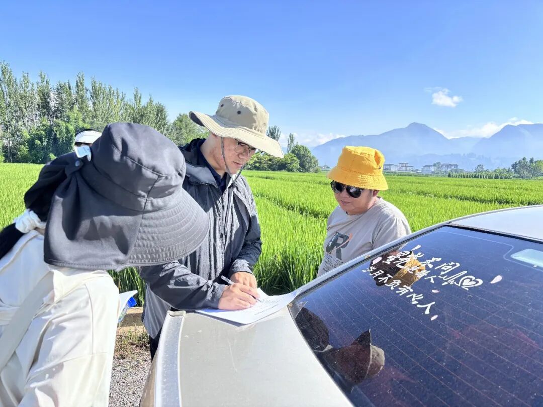 洱海水稻科技小院的学生正在田间走访。(受访者供图)