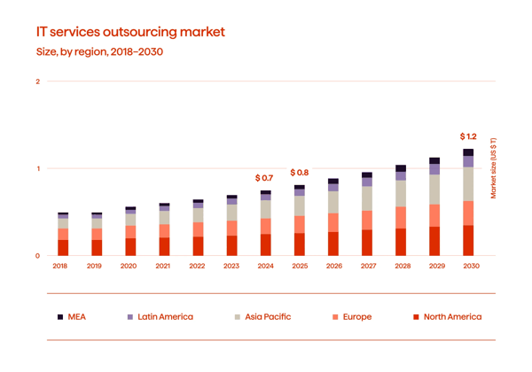2024-2030全球IT外包市场洞察:76%企业采用率推动万亿美元规模