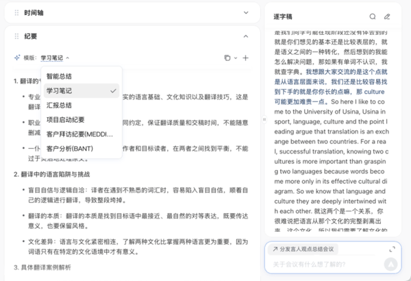 这次我什么都没做,会后直接打开录制文件,选择「智能总结」模板。