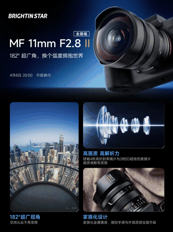 IT之家 4 月 7 日消息,星曜 11mm f/2.8 II 鱼眼镜头将在明天 20:00 发布,适配全画幅相机。