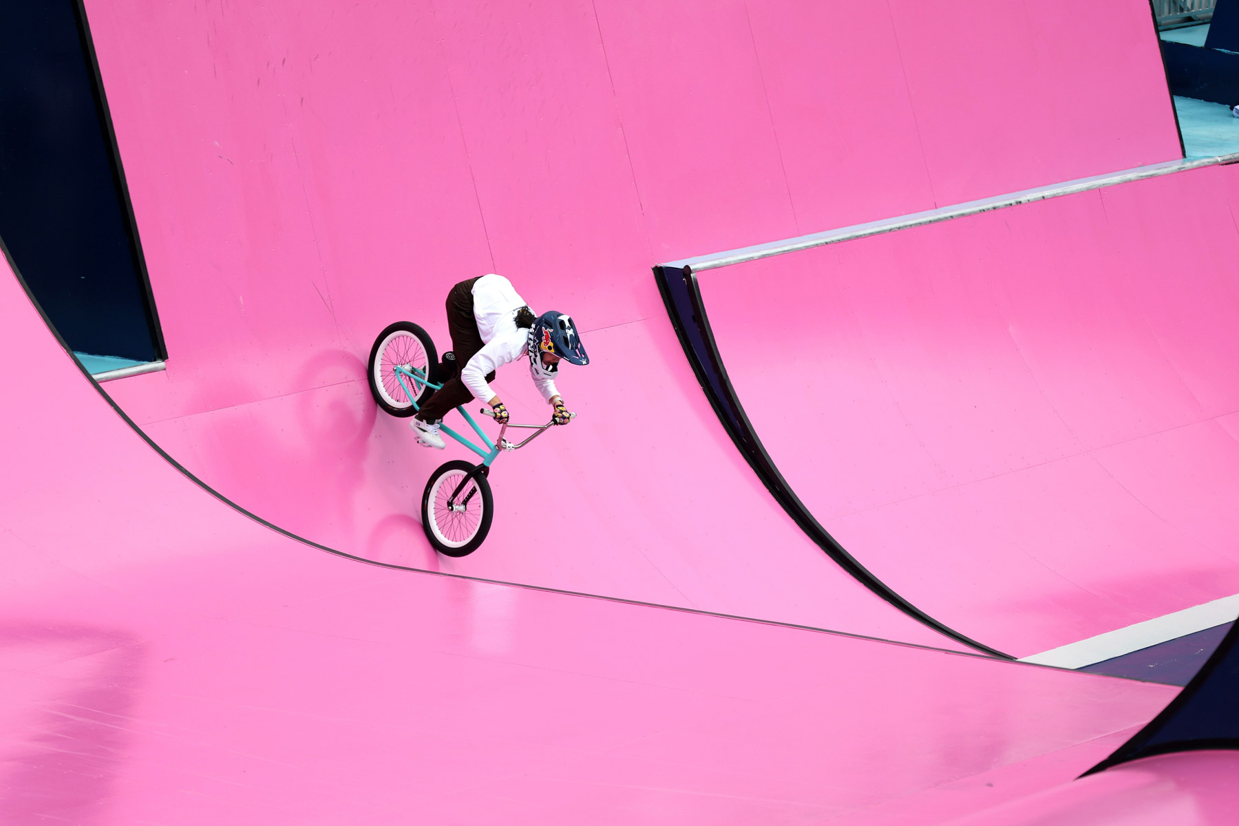 2025年10月25日,第十五届全国运动会自由式小轮车女子公园赛决赛在深圳光明区虹桥公园举行。 (IC photo/图)