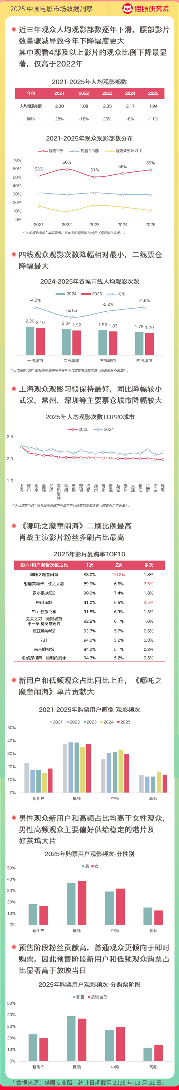 “根据我们观察到的情况,2025年看一次或者两次电影的观众比较多。如果是只看一次的,那大概率是去看的《哪吒2》。如果看了两次,那有可能是年初和年末各一次,分别是《哪吒2》和《疯狂动物城2》。”上述人士说。